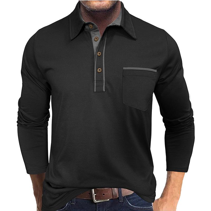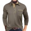 Men's Lapel Contrast Color Pocket Long Sleeve Polo Shirt Casual T-Shirt Tees