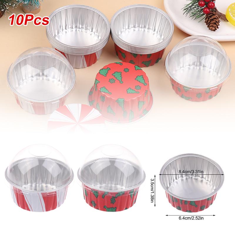 10Pcs Reusable Aluminum Foil Cup With Lid Pudding Cake Mold Air Fryer Tinfoil Box Baking Tray Tinfoil Cups Baking Pastry Tools