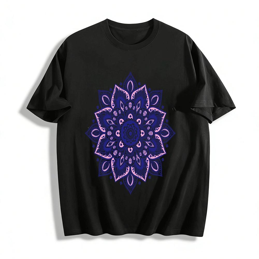 Boho Mandala Print Casual Loose Crew Neck Short Sleeve Top Pure Cotton T-shirt