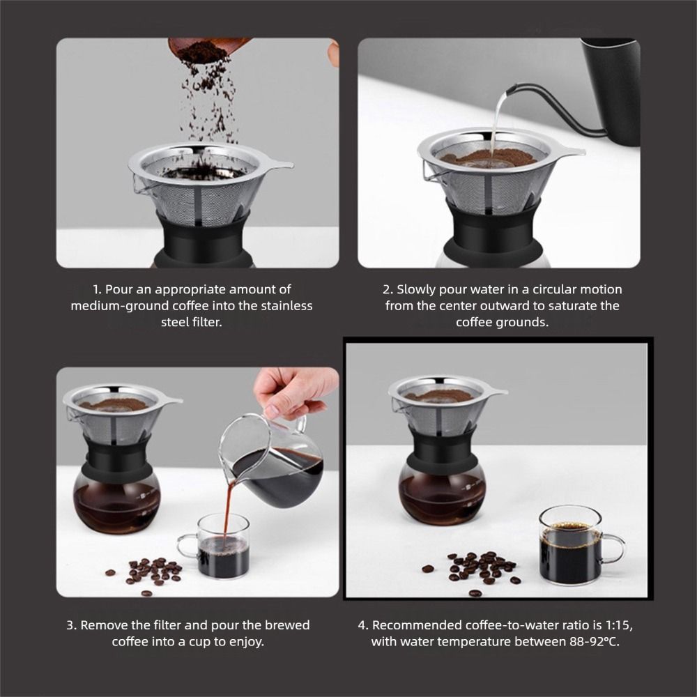 Stainless Steel Coffee Filter Drip Type Fine Mesh Reusable Coffee Filter No Filter Paper Required Silver Pour Over Cone Dripper