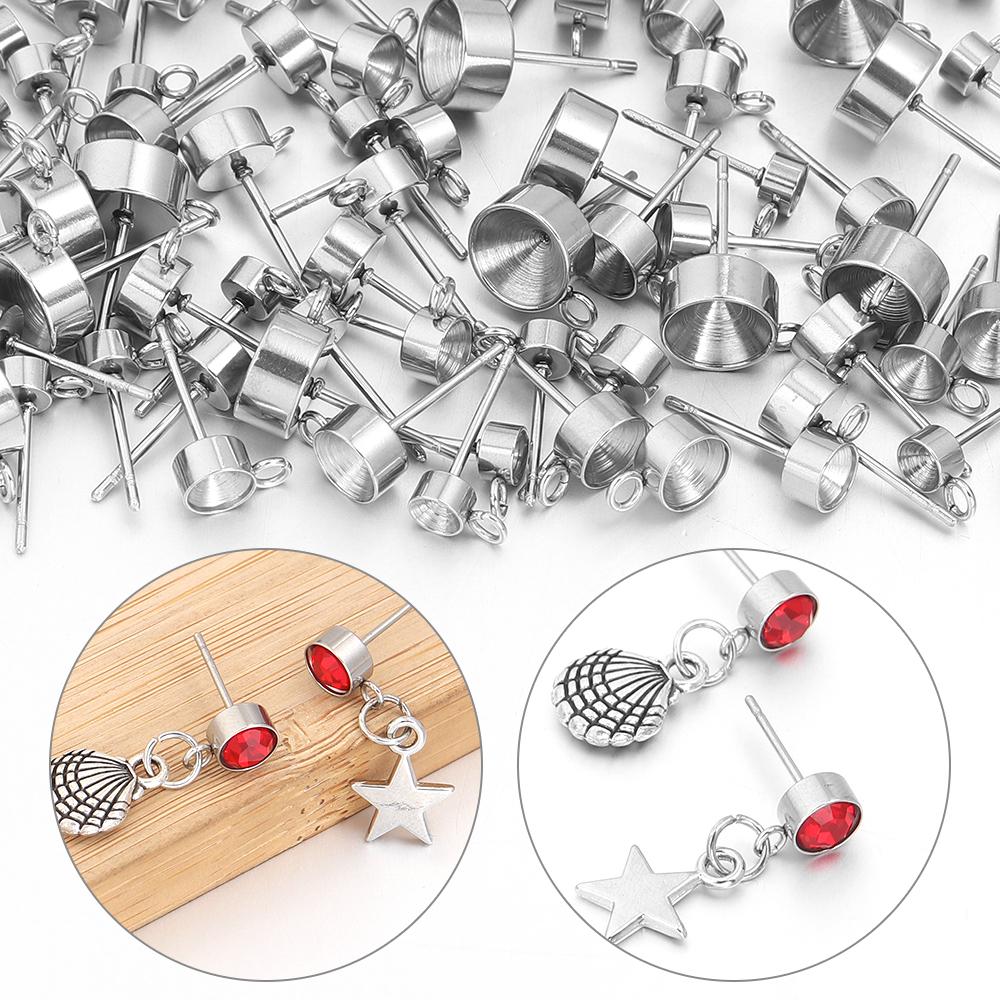 20pcs/lot Stainless Steel Stud Earring Base Settings Fit 4 5 6 8mm Cubic Zircon Stones DIY Jewelry Making Earrings Accessories