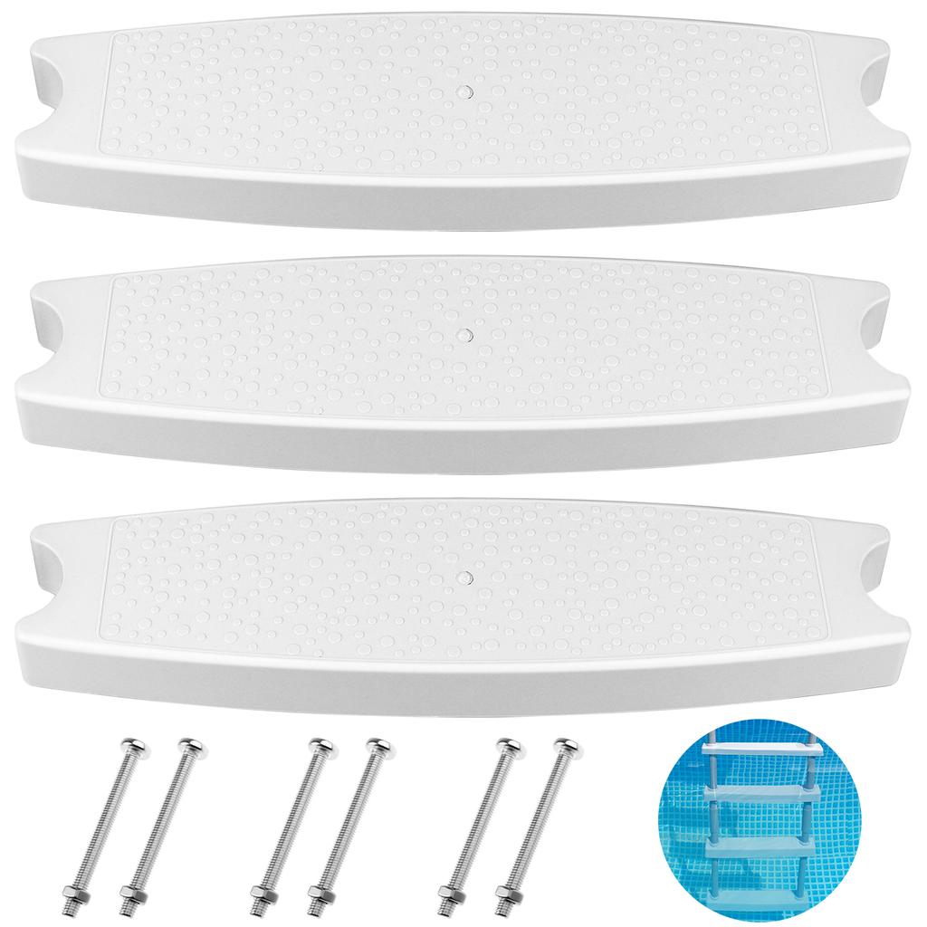 3Set Universal Swimming Pool Ladder Steps Replacement,19.6" Heavy-Duty Molded Plastic Pool Ladder Rung Step With Stainless Steel