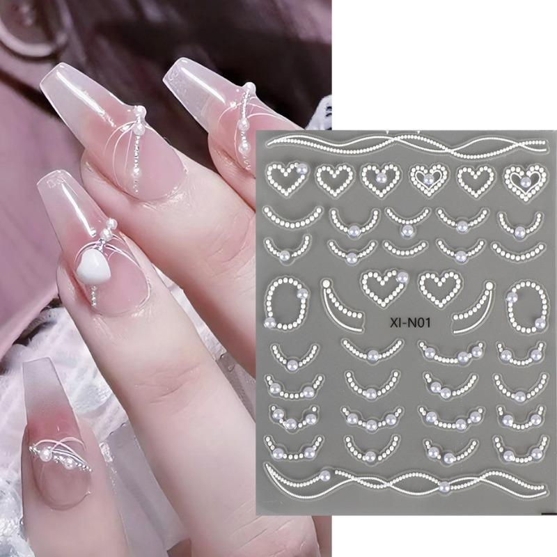 New Pearl Nail Art Stickers Ins Style Three-dimensional Semi-round Pearl Necklace French Love Nail Art Spot Drill Stickers