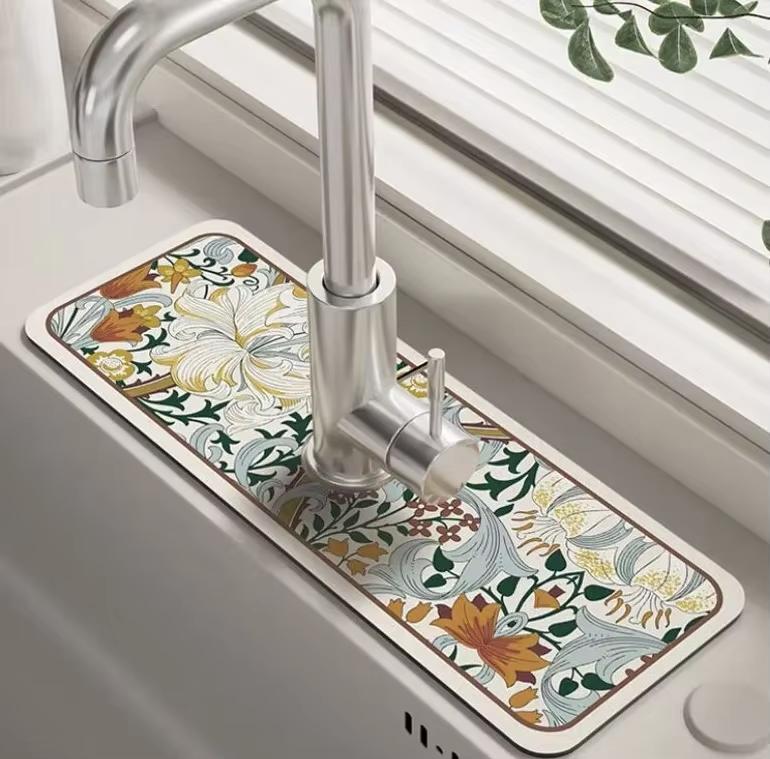 VIKAMA Cartoon Cute Faucet Mat Kitchen Super Absorbent Mat Coffee Machine Drain Mat Drying Mat Quick-Drying Bathroom Drain Mat