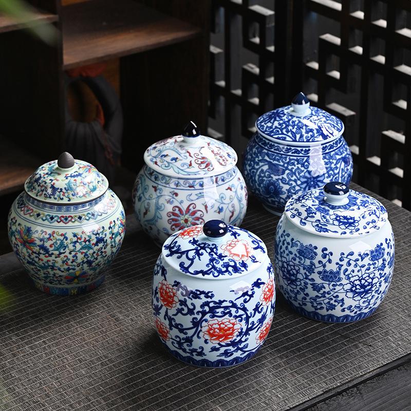 Blue and White Porcelain Tea Jar Retro Ceramic Storage Jar Household Sealed Jars Moisture-proof General Jars Tea Warehouse Can