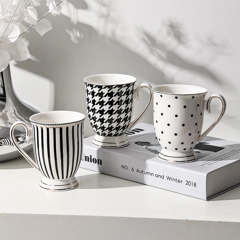 280ML Geometric Pattern Ceramic Mug Polka-dot Stripe Afternoon Tea Mug Living Room Decoration Household Mug Drinking Utensils