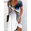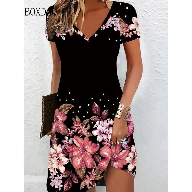 3D Vintage Women Flowers Printed Dresses Summer Plus Size Short Sleeve V-Neck Casual A-Line Knee-length Dress Loose