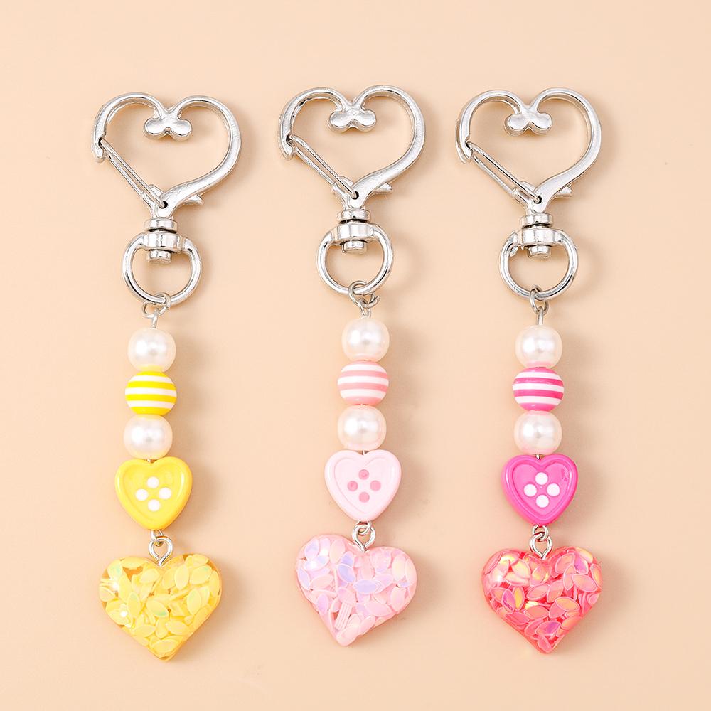 Cute Love Heart Keychain Women Girls Beaded Key Ring Pendant for Handbag Decor DIY Key Chain Jewelry Gift