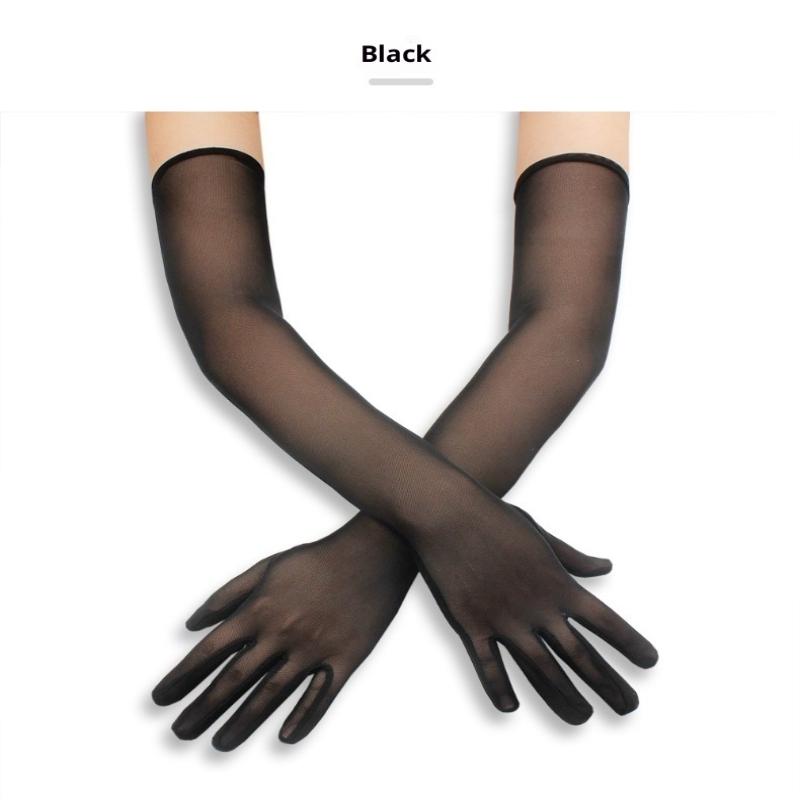 55CM Sexy Lace Thin Hollow Transparent Long Gloves Breathable Net Yarn Women Man Stage Performance Party Cosplay Elasticity