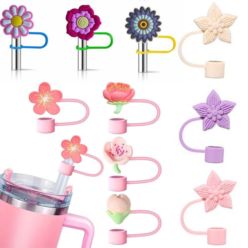 Portable Flower Straw Tips Covers Dust-Proof Good Sealing Straw Cover Cap Party Supplies Straw Topper for 10mm Straw