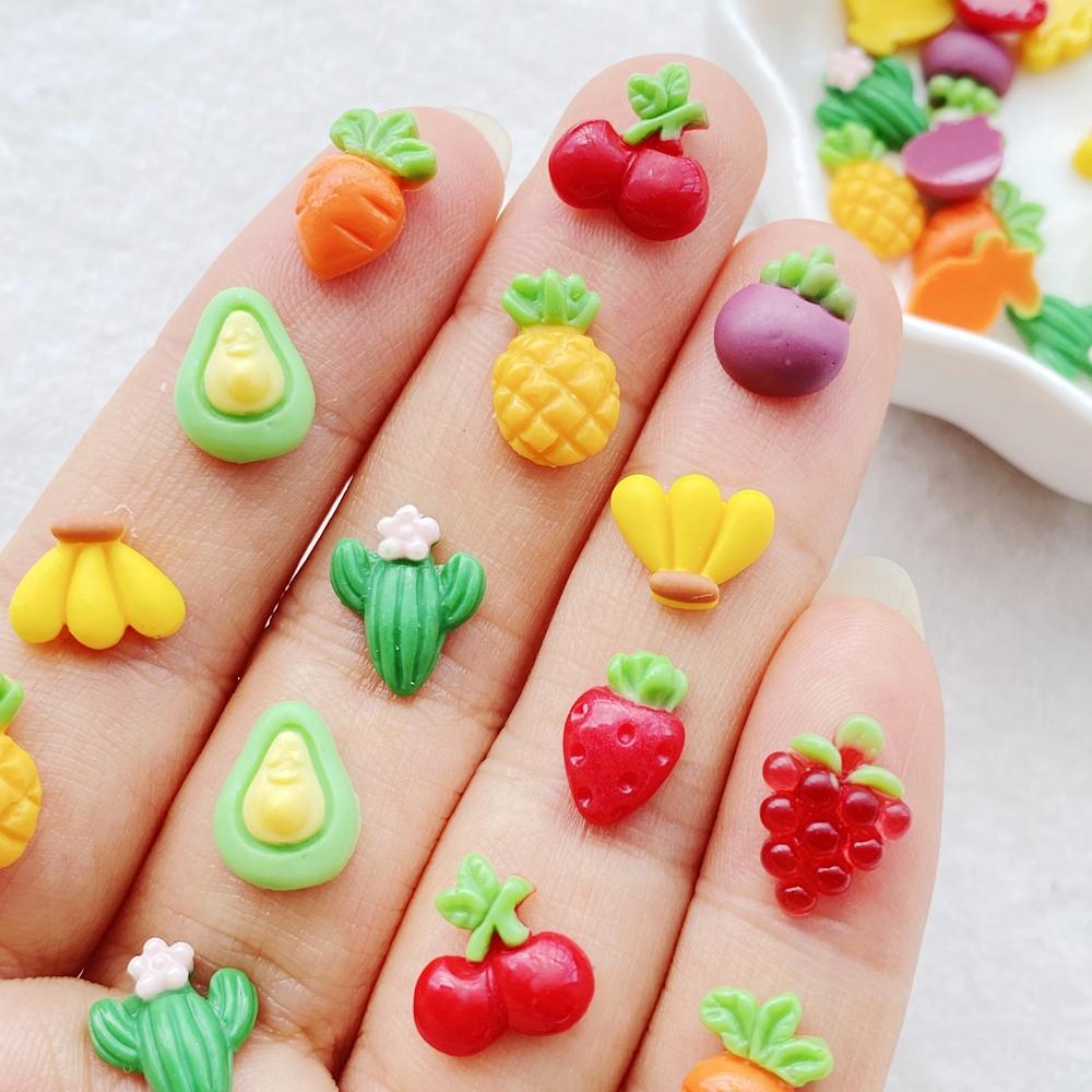 50Pcs Cute Mini Cartoon Cherry, Pineapple, Strawberry Fruits Nail Art Resin Designer Charms DIY Craft For Nail 3D Decorations E