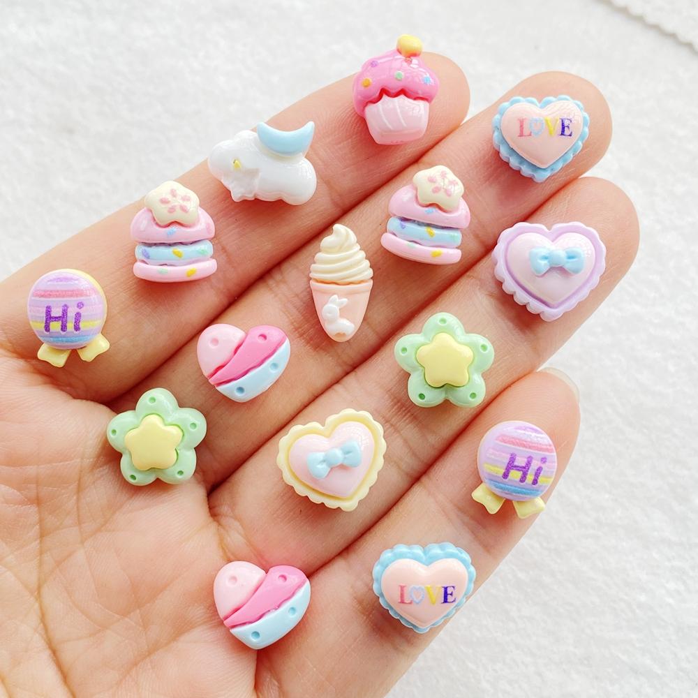30pcs Resin Colorful 3D Cute Strawberry Cake, Bow Heart, Ice Cream Nail Art Flatback Scrapbook DIY Wedding Jewelry Crafts