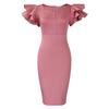 Summer Fashion Women's Nail Bead Lotus Leaf Sleeve Hip Wrap Banquet Dress Dress