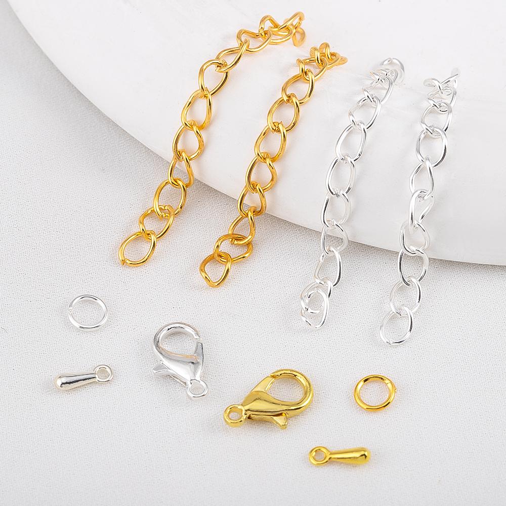 200pcs/Box Lobster Clasp Jump Rings Extension Chain Water Drop End Pendants Connector Chain Charm Kit for DIY Jewelry Findings