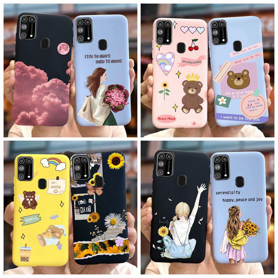 For Samsung Galaxy M31 Case SM-M315F Cute Bear Cartoon Painted Cover Phone Case For Samsung M31 M 31 GalaxyM31 Bumper Soft Funda