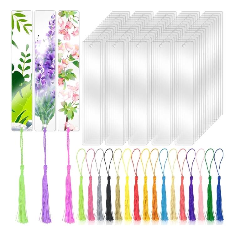 Rectangular Bookmarks Acrylic Bookmarks Blank Bookmarks Tassels Set for Student