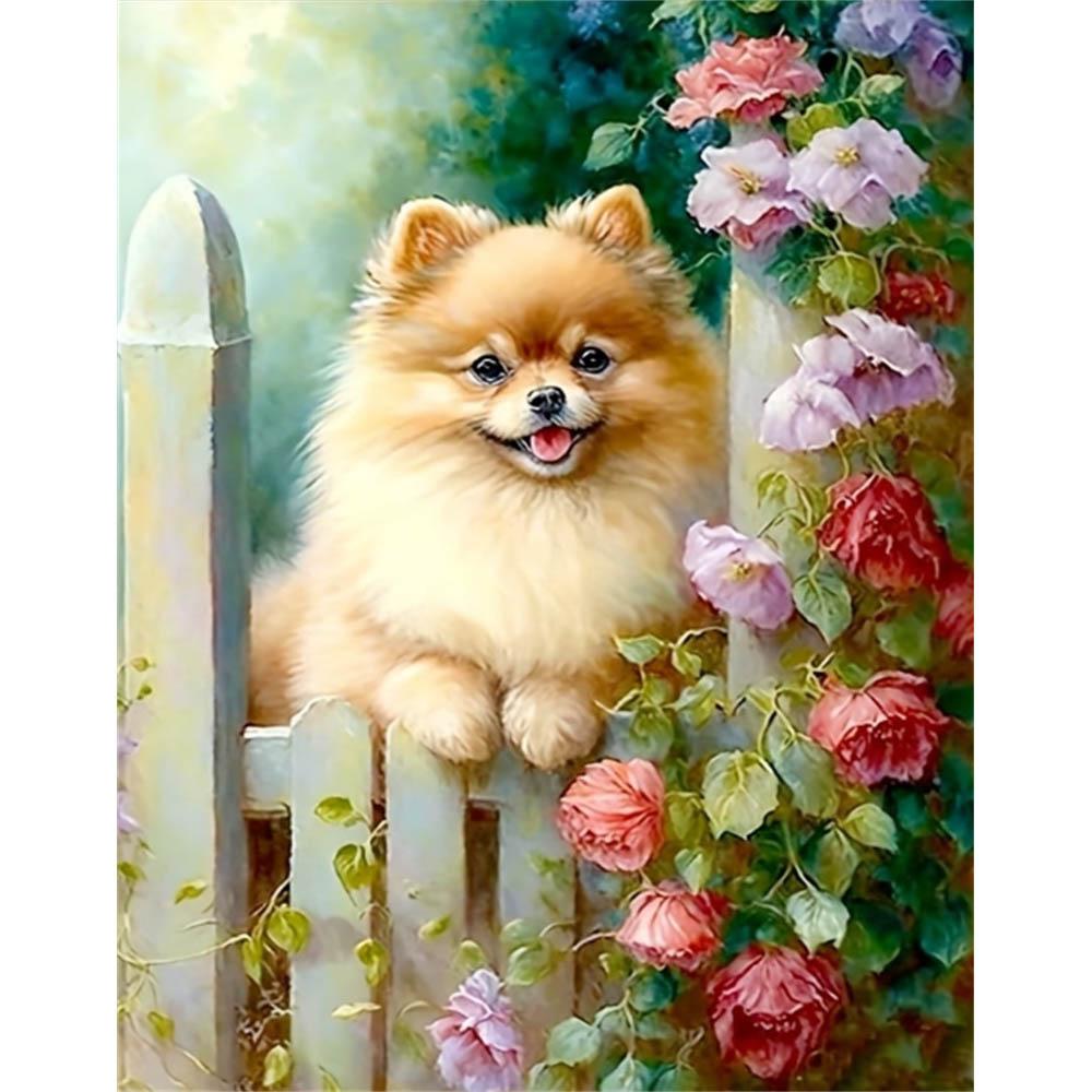 Dog Diamond Art Set, 5D Flower Diamond Embroidery DIY Round Full Diamond Gemstone Crafts for Home Wall Decoration