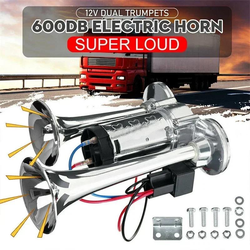 600DB 12V Dual Trumpets Super Loud Car Electric Horn Truck Boat Train Speaker Car 12V Compressor Air Horn with Wires Relay
