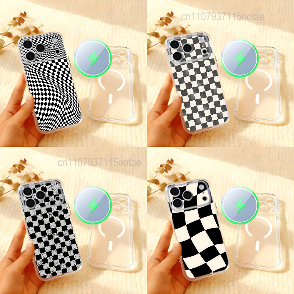 Black White Checkered Phone Case For iPhone 17,16,15,14,13,12,11 Pro,Max,Plus,Mini,Air,E Magnetic Frosted Clear
