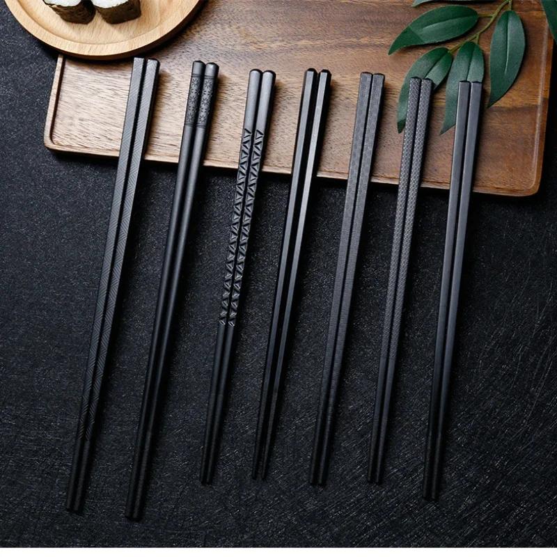 10Pairs Set Japanese Chopsticks Black Sushi Fast Food Noodles Chop Sticks Korean Tableware Kitchen Bar Supplies Chinese Cutlery