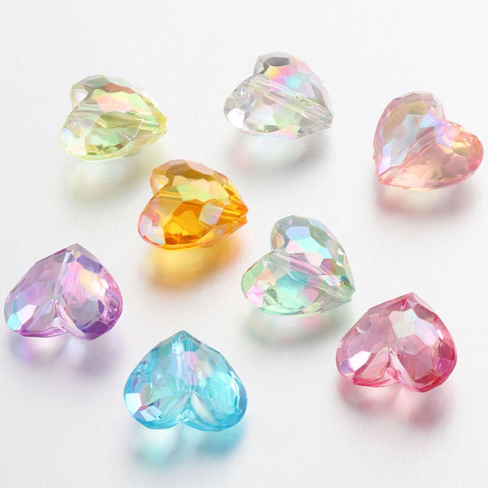 20pcs Acrylic Love Heart Beads Mixed Color Crystal Loose Spacer Beads for Jewelry Making Necklace Bracelet Handmade Accessories