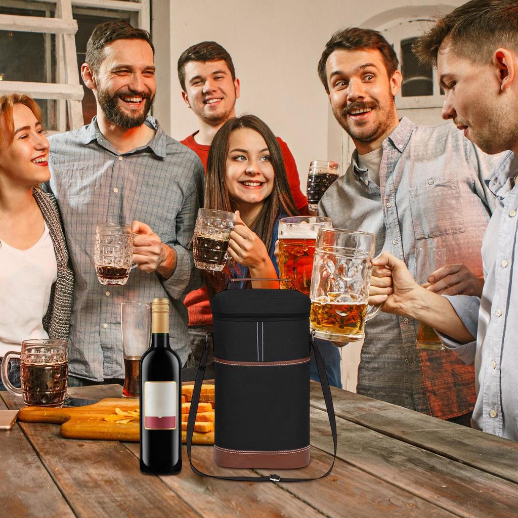 Wine Bottle Cooler Bag Leakproof Tote Carrier Storage Pouch Reusable Wine Carrying Case For Beach Traveling Work Lunches Trips