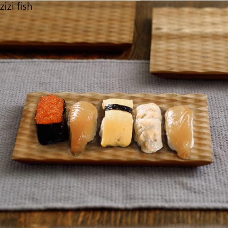 Rectangular Sushi Plate Board Wooden Pallets Salmon Sashimi Plate Cake Stand Dim Sum Dish Dessert Plates Fruit Bowl Snack Tray