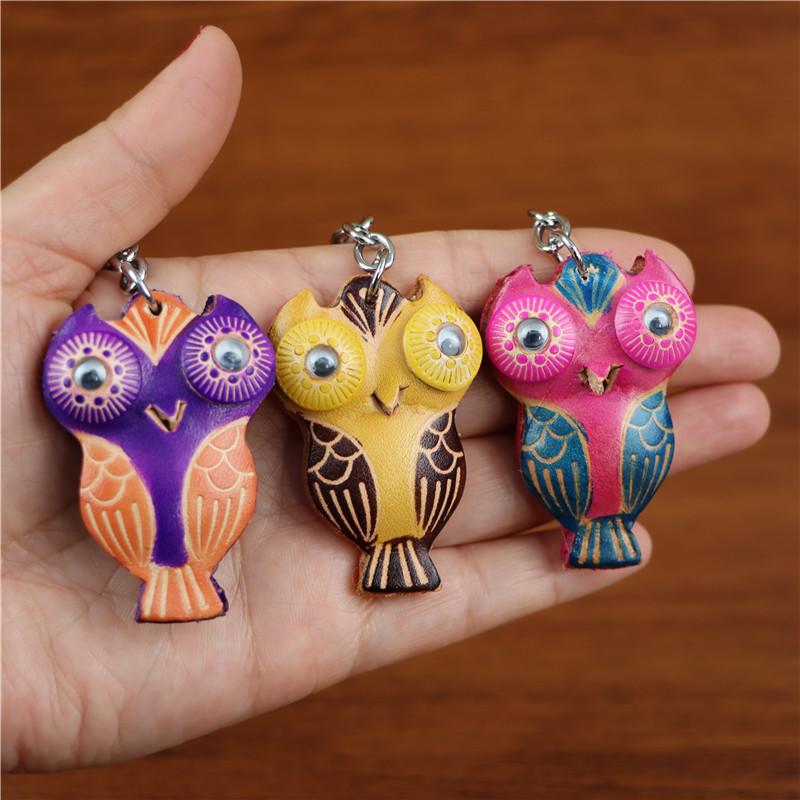First Layer Cowhide Creative Owl Bag Car Keychain Pendant Animal Doll Jewelry Cute Little Gift
