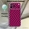 Checkered Pattern Magnetic Wireless Charging Transparent White Phone Case For iPhone 17,16,15,14,13,12,11,Pro,Max,Plus
