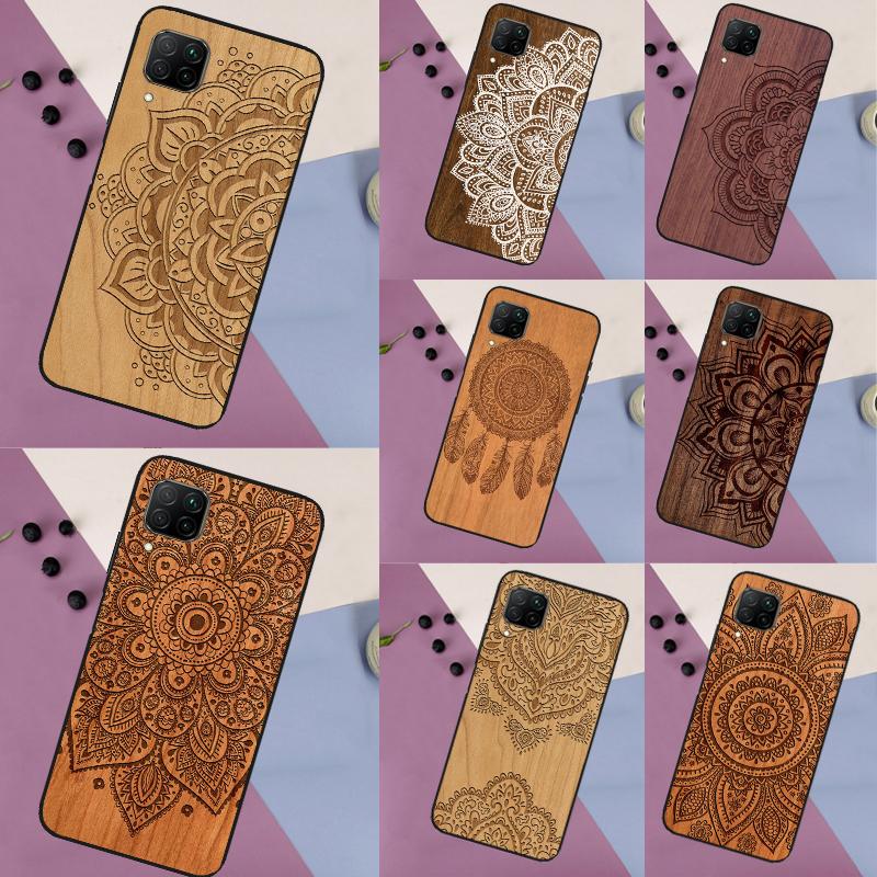Mandala Floral Wood Case For Huawei P30 Pro P20 P40 Lite Nova 8i 3i 7i 11i 9 10 SE 5T Y60 Y61 Y70 Y90 Y91 Cover
