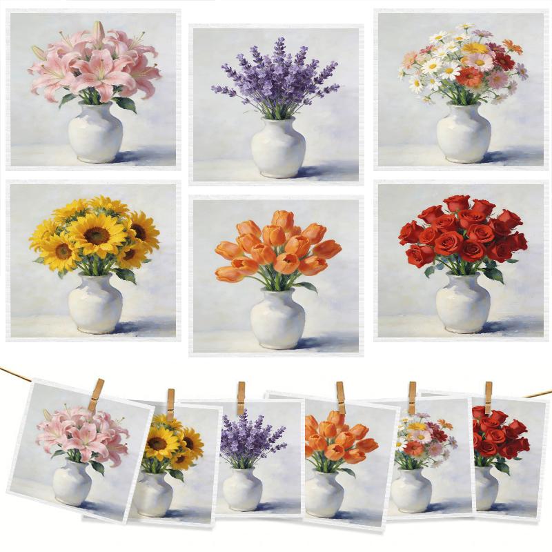 6PCS Cleaning Dishcloths Reusable Kitchen Dish Towels Absorbent Arrange Flower Pattern Dishcloth Lint Free Cloth Washable Duster Rags Tea Towels