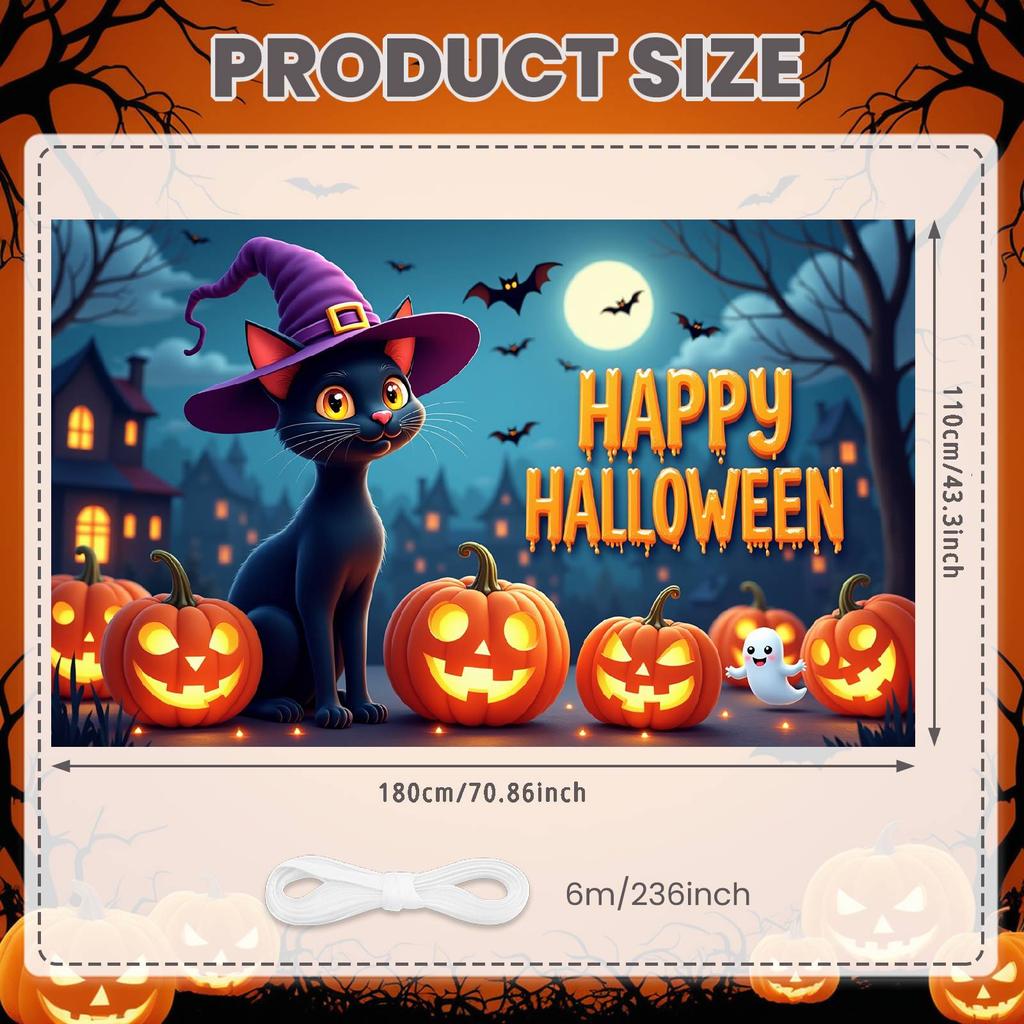 Party Banner Night Scene Witch Hat Banner Halloween Banner Black Pumpkin Decoration For Halloween Party Festival Event Spooky