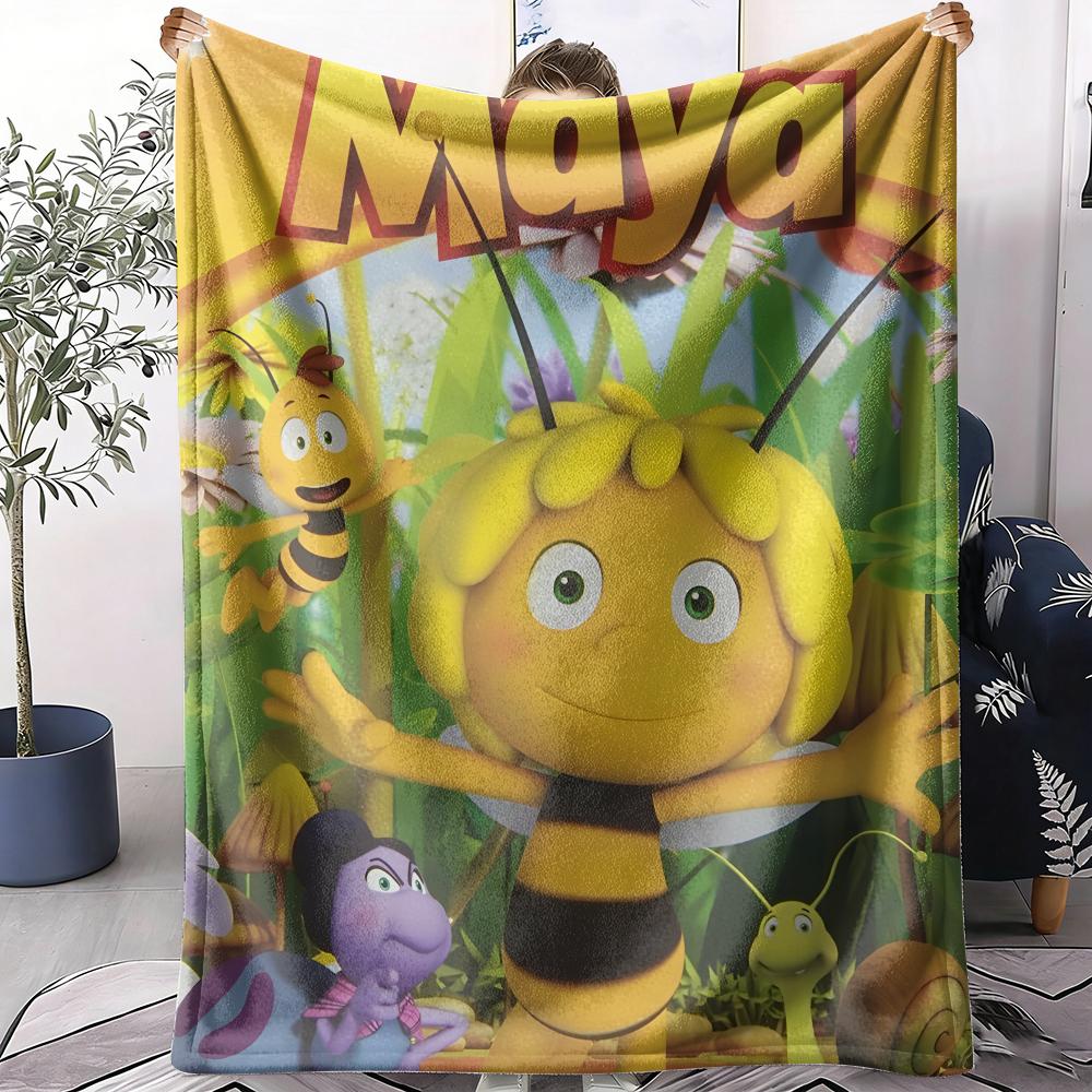 RIPMMaya The Bee With Flowers Throw Soft Flannel Throw Summer Blanket Lightweight Cozy Nap Blanket for Sofa Bed TravelR-I-P