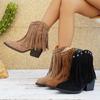 Botines de Tacón Grueso y Tacón Alto con Manga de Borlas Botas Botas Botas de Mujer