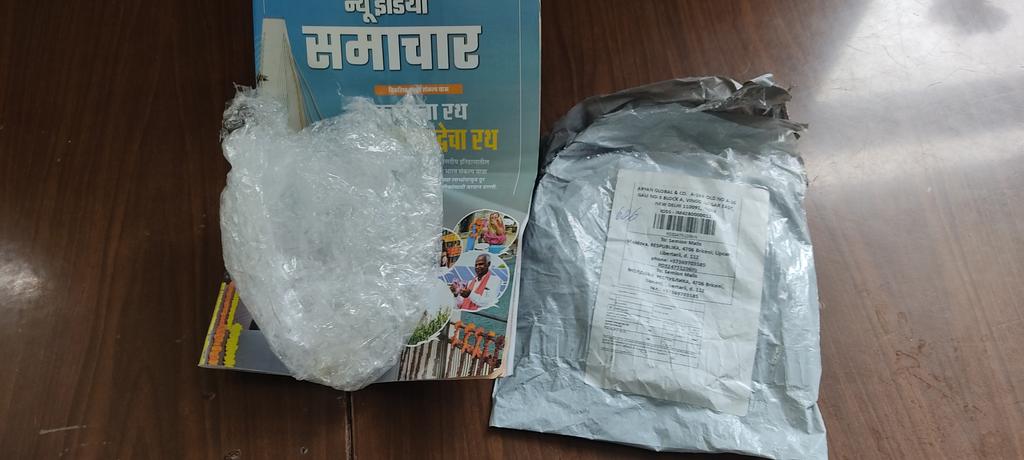 Pakend oli kahjustatud ja suletud teibiga. Parfüümipudeli asemel oli pakis India ajakiri, ilmselt kaalu järgi.