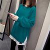 Kevad-sügis triibuline võlts Kaheosalised T-särgid Naiste Ebaregulaarne ülaosa pikkade varrukatega Korea lahtine keskpikk T-särk