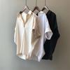 Japanese Summer Outfit V-neck Pullover Loose Solid Color Shirt on Bat Sleeves