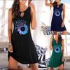 Women's Rose Flower Fake Two-piece Moon Printed Sleeveless Round Neck Dress Loose Soft and Comfortable Plus Size Dress