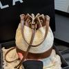 Woven bucket bag women's new 2025 fashion versatile shoulder bag splicing casual messenger straw bag