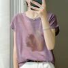 2025 Summer New Retro Flower Short-sleeved T-shirt Loose Shirt Top for Women