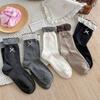 Lady Spring and Autumn Sweet Pokdot Cloth Label Matching Color False Two Wooden Ear Side Boneless Tube Pile Socks