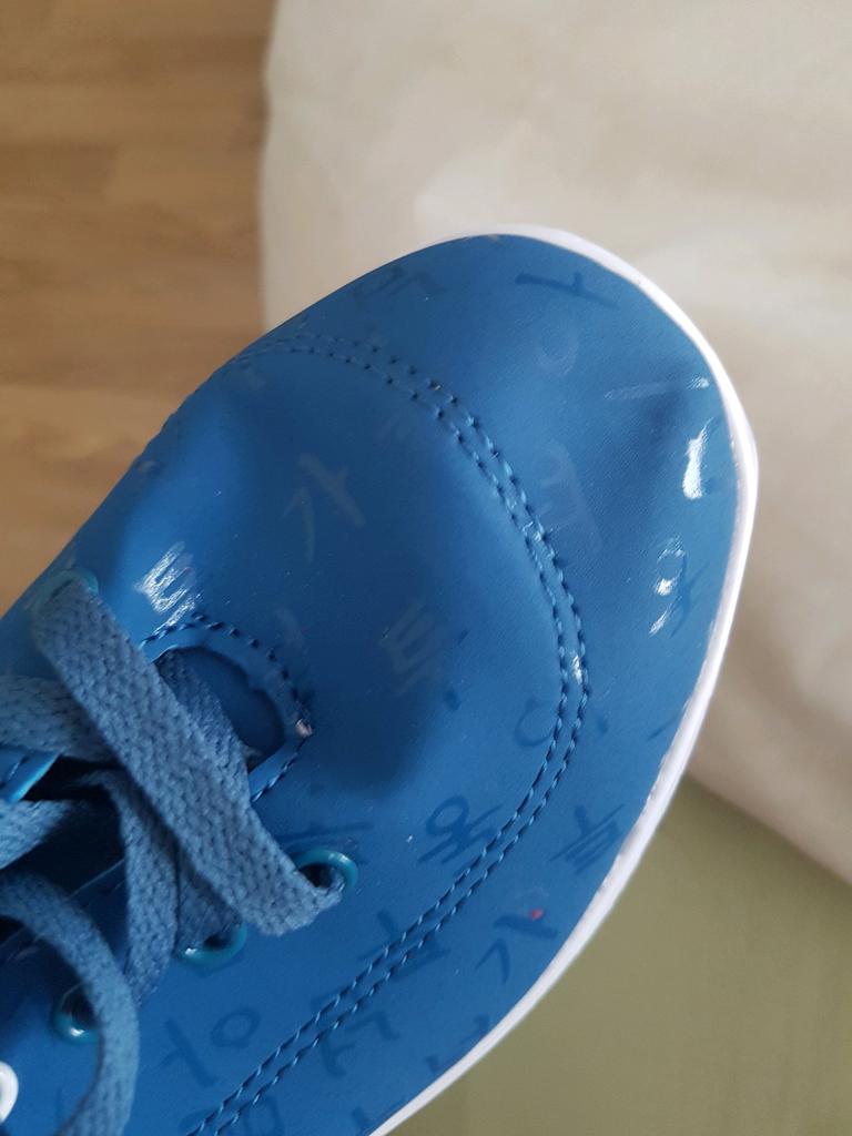 Arrivée déformé au bout, ce qui gêne lorsque l'on porte la chaussure. Dommage car elles sont très sympa ! Je vais essayer en mettant du journal au bout de les refaire prendre une bonne forme. Pour la taille elles serrent un peu.