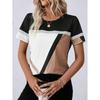 Women's T Shirt Graphic Casual Short Sleeve Round Neck Regular Tops Daily Patchwork Print Summer Tshirt