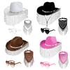 - 【Cowboy Hat】: This set includes a rhinestone fringe cowboy hat and a paisley bandana. The sparkling rhinestone fringe decoration and exquisite details make you stand out at parties, helping you create an impressive cowboy look.