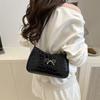 Color Simple Solid Bow Decoration Crocodile Texture Women Casual Shoulder Bag