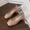 Fashion Spring 2025 New Bow Chunky Heels Sweet Retro French Nude Pink High Heels for Women shoes for women