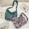 25 Corduroy plaid double-sided back shoulder bag large-capacity vest bag student class bag