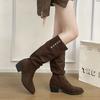 Pile boots women's pointed high tube medium tube knight boots 2025 new early autumn winter brown western cowboy long boots
