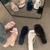 French evening breeze gentle fairy one-word slippers women wear new bow-tied thick-heeled high-heeled cool slippers in summer