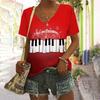 Music Notes 3d Printing Women's Casual Fashion Street Short-sleeved V-neck T-shirt